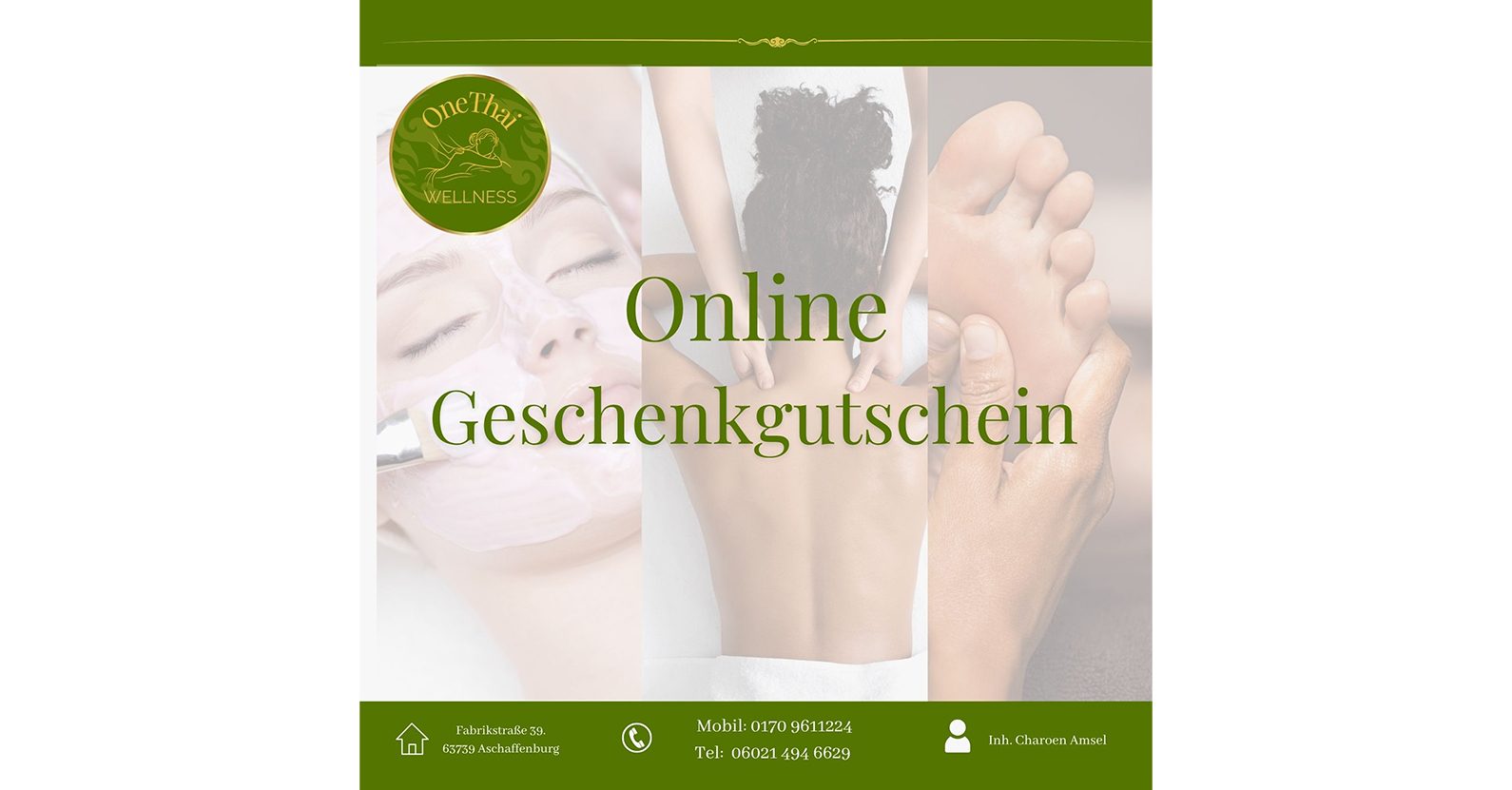 Verschenken Sie Wohlbefinden mit einem Gutschein von One Thai Wellness! Verwöhnen Sie Ihre Liebsten mit einer erholsamen Auszeit in unserem Massage- und Kosmetikstudio. Ob traditionelle Thai-Massage, entspannende Aromatherapie oder exklusive Gesichtsbehandlungen – bei uns finden Sie die perfekte Kombination aus Entspannung und Pflege. Ein Gutschein von One Thai Wellness ist das ideale Geschenk für besondere Anlässe oder einfach, um Danke zu sagen. Pure Entspannung. Neue Energie. Zeit für sich.